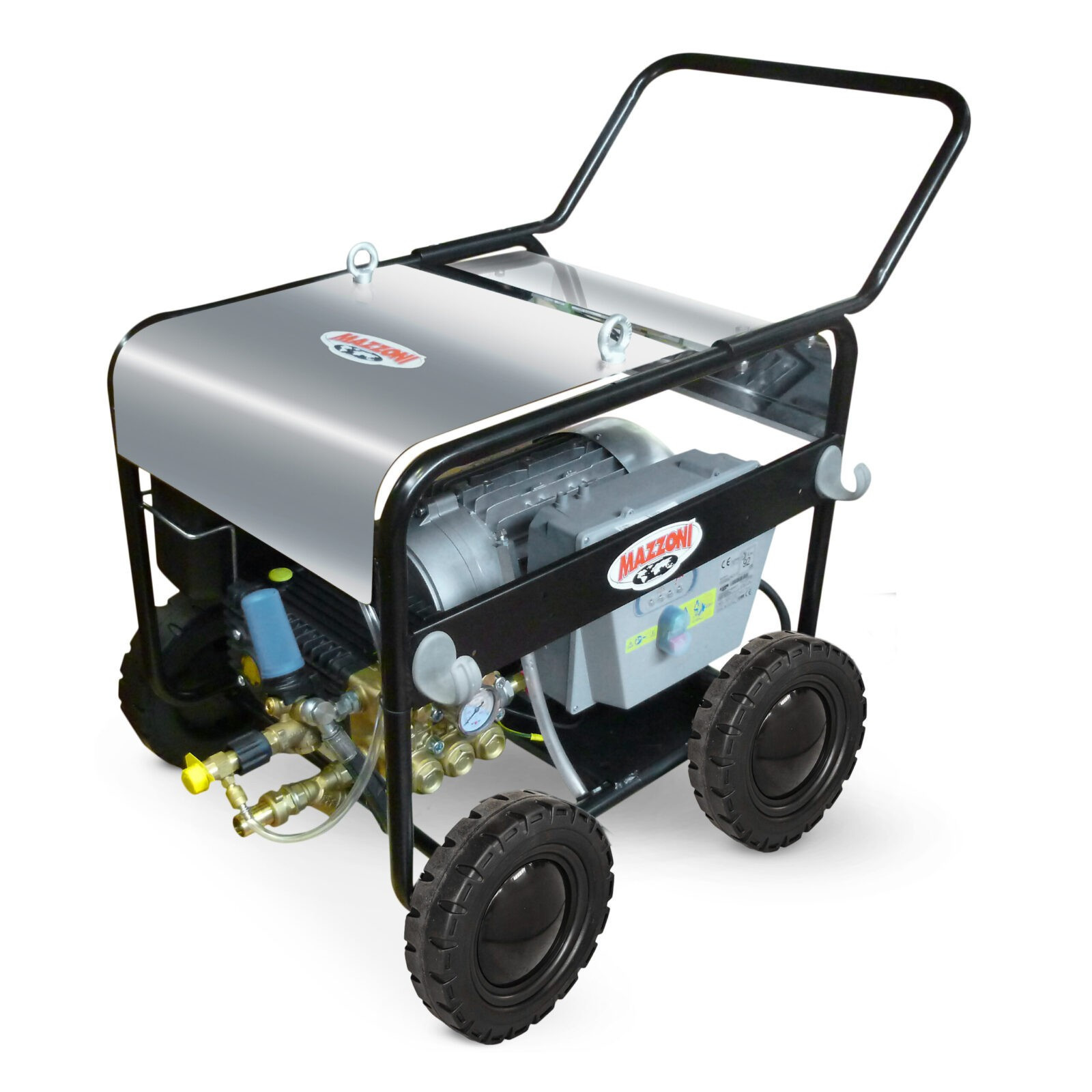 The FX Heavy Duty is a premium-class professional pressure washer engineered for durability and high-performance cleaning in aggressive environments. While sharing the robust internal components of the Mazzoni range, the FX version is distinguished by its high-grade stainless steel cover, providing superior protection against corrosion, chemical splashes, and mechanical impacts. This makes it particularly suitable for the food industry, shipyards, and high-end facility management where hygiene and equipment longevity are critical.