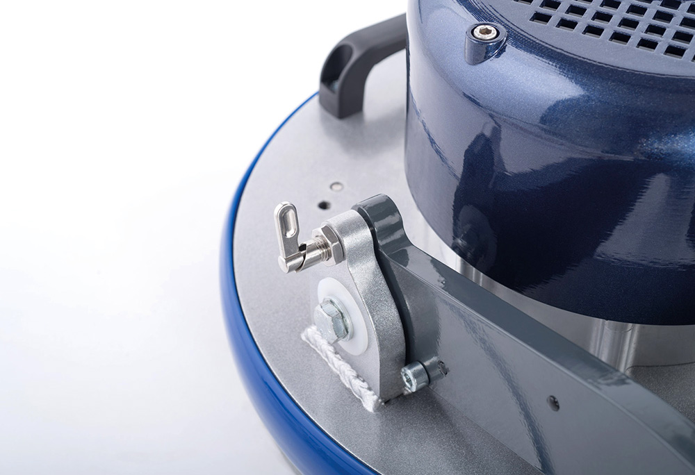 High-performance 16” industrial burnisher and polisher designed for maintaining metallic wax-treated surfaces. Features an integrated electric spray system to achieve a premium “wet look” high-gloss finish with exceptional maneuverability in tight spaces.
