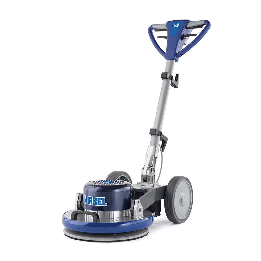 The Wirbel C 1000 is a specialized high-speed single-disc machine engineered specifically for professional floor maintenance and restoration. It excels at polishing surfaces treated with metallic waxes, delivering an incredible degree of gloss. Equipped with an integrated electric spray system, it allows operators to achieve a professional “wet effect” finish quickly and effortlessly. Unlike traditional ultra-high-speed units that are restricted to wide-open spaces, the C 1000 features a unique drive system that enables both straight-line and fan-like movements. This versatility allows the machine to operate effectively in small, confined areas and reach points that are typically inaccessible.